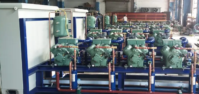 活塞并聯(lián)制冷機(jī)組的主機(jī)選用半封閉式往復(fù)式壓縮機(jī),活塞并聯(lián)機(jī)組制冷量區(qū)域大,PLC智能控制系統(tǒng),可以用于中、小型制冷系統(tǒng)中。主要應(yīng)用:商場(chǎng)超市、陳列柜和中小型冷庫(kù)